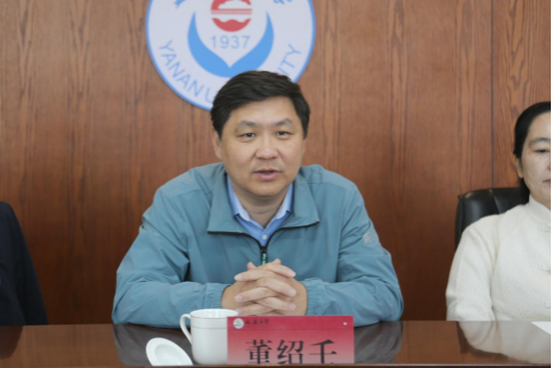 高子伟代表学校对董绍壬一行的到访表示热烈欢迎。他在致辞中回顾了董必武等老一辈革命家和齐教习等老同志与延安大学的深厚历史渊源,介绍了学校近年来在教育教学、科学研究和人才培养等方面取得的重要进展。他表示,学校将始终铭记各级领导的关怀与支持,坚定不移地传承红色基因,赓续红色血脉,加快推进学校高质量发展,将延安大学建设得“更有特色、更有水平”。